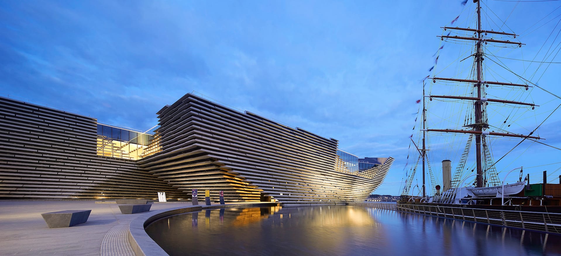 Designed by internationally acclaimed Japanese architect Kengo Kuma, V&A Dundee stands at the centre of a £1 billion transformation of Dundee’s waterfront.